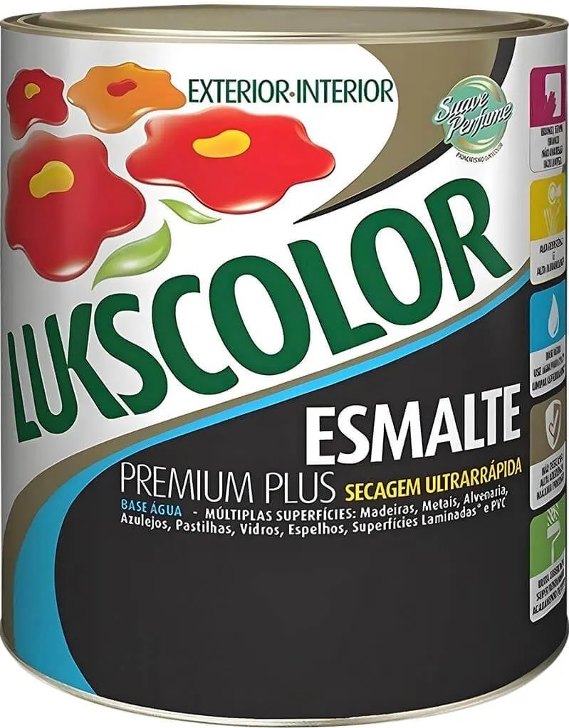 Com o ESMALTE BASE ÁGUA PREMIUM PLUS LUKSCOLOR você protege e decora portas, janelas, portões, paredes, móveis, objetos, etc. em superfícies de alvenaria, madeira, metais ferrosos, aço galvanizado, alumínio, azulejos, pastilhas, vidro, superfícies laminadas (*tipo fórmicas) e PVC. Disponível nos acabamentos brilhante, acetinado, fosco e efeito metalizado para você escolher o que mais combina com o seu estilo. Produto de alta durabilidade, alto rendimento e excelente resistência em ambientes externos e internos. Apresenta máxima proteção às superfícies, não descasca e não amarelece com o tempo, proporcionando um acabamento impecável com ótima cobertura, fácil limpeza e excelente preservação do brilho. Produto base água, portanto dispensa o uso de Aguarrás para diluição, tornando o processo de pintura mais simples. Reduz o tempo de trabalho de pintura, pois possui uma secagem ultrarrápida. Com Suave Perfume, proporciona conforto e bem-estar, permitindo a sua permanência no ambiente do início ao fim da pintura.
